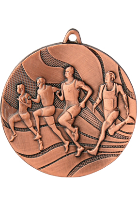 Medale sportowe, tematyczne, o średnicy 50 mm i grubości 3 mm, wykonane ze stali, dostępne w trzech kolorach: złoto, srebro i brąz.