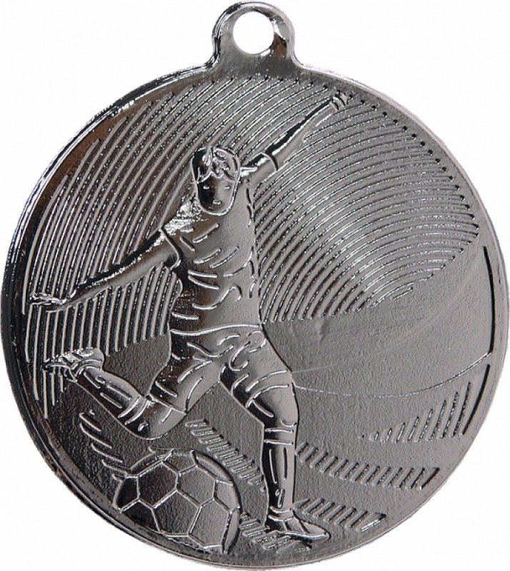 Metalowy medal z uszkiem do zawieszenia na wstążce.