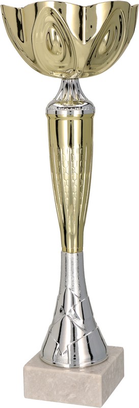 Puchary klasyczne w kolorze złotym ze srebrnymi detalami.
