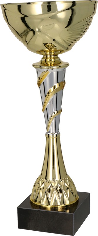 Puchary klasyczne w kolorze złotym ze srebrnymi detalami.