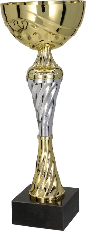 Puchary klasyczne w kolorze złotym ze srebrnymi detalami.