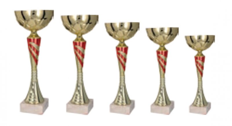 Puchary klasyczne w kolorze złoto-czerwonym.