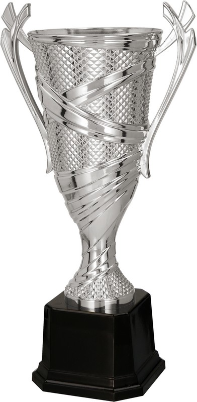 Innowacyjne puchary w kolorze srebrnym. W całości wykonane z tworzywa sztucznego.