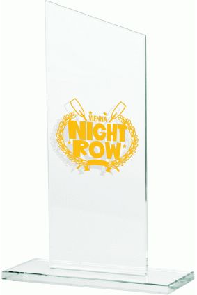 Standardowe trofeum szklane z usługą grawerowania dowolnego tekstu lub projektu. Opcjonalnie miejsce grawerowania może zostać pokryte farbą w dowolnym kolorze.