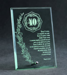 Trofeum szklane grawerowane. Świetnie prezentuje się jako nagroda korporacyjna, upominek okolicznościowy, a nawet jako trofeum sportowe.