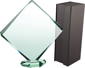 Trofeum szklane. Oryginalne etui w cenie produktu.Świetnie prezentuje się jako nagroda korporacyjna, upominek okolicznościowy, a nawet jako trofeum sportowe