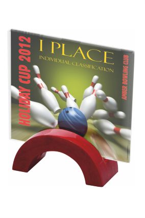 Trofeum szklane z podstawką z nadrukiem kolorowym. Świetnie prezentuje się jako nagroda korporacyjna, upominek okolicznościowy, a nawet jako trofeum sportowe.