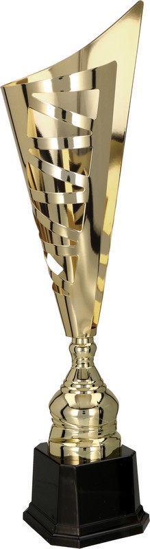 Nowoczesne i bardzo atrakcyjne wzornictwo pucharów w kolorze złotym.
